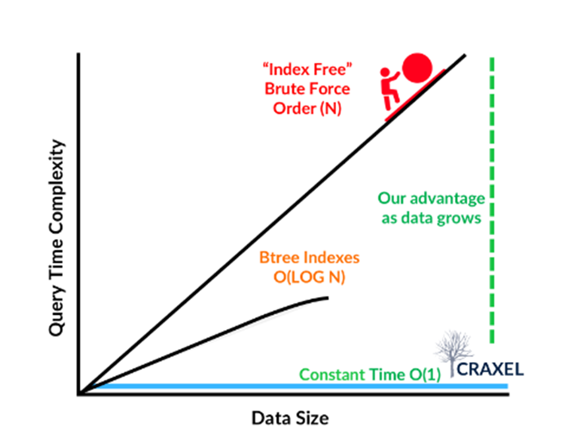 Our patented algorithm “Organizing information using hierarchical data spaces” - stores data in a precisely hashed location (like a GPS for data) – enabling us to use significantly less compute (80%) and commodity storage (i.e. S3) and still enable “hot” access to massive volumes of data at the fraction of the cost for existing brute force solutions.